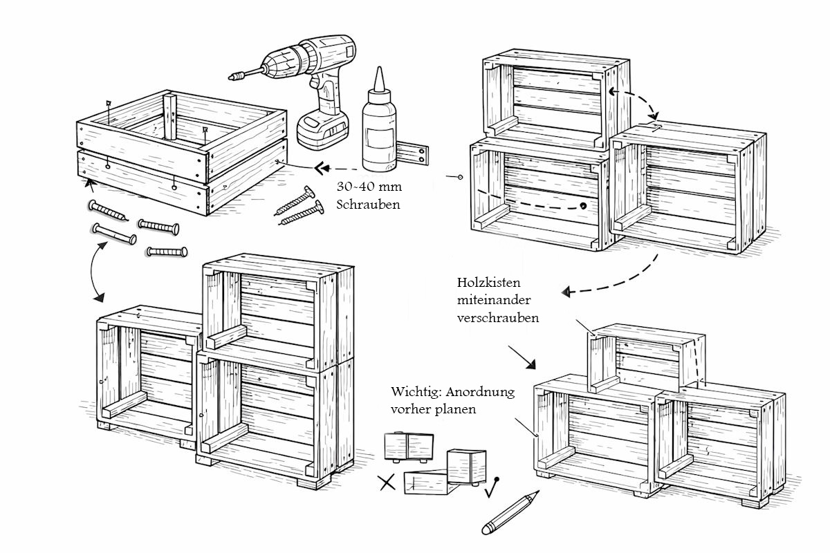 4️⃣ Holzkisten miteinander verschrauben