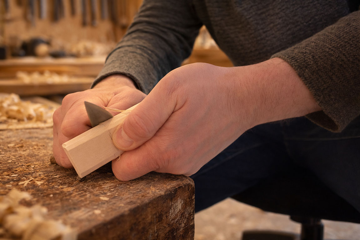 - bei Bedarf vorbohren (bei sehr hartem Holz)